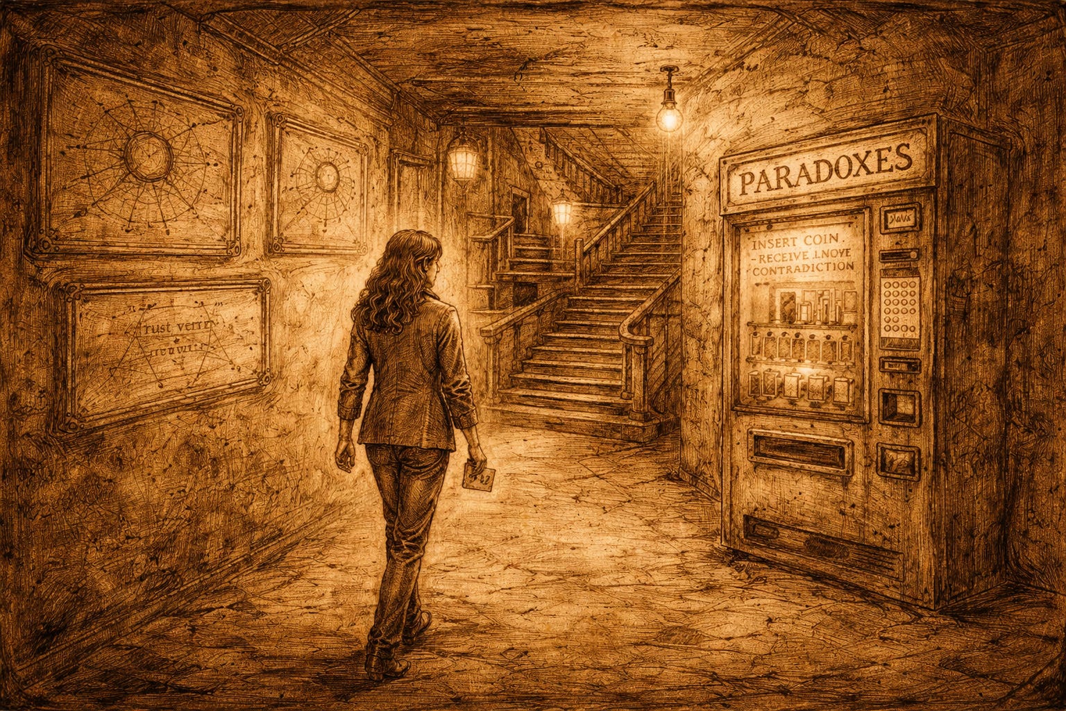 Then, because clerks are rarely content with efficiency alone, he added: “Try the Corridor of Reasonable Doubt. Second left after the Paradox Vending Machine.”