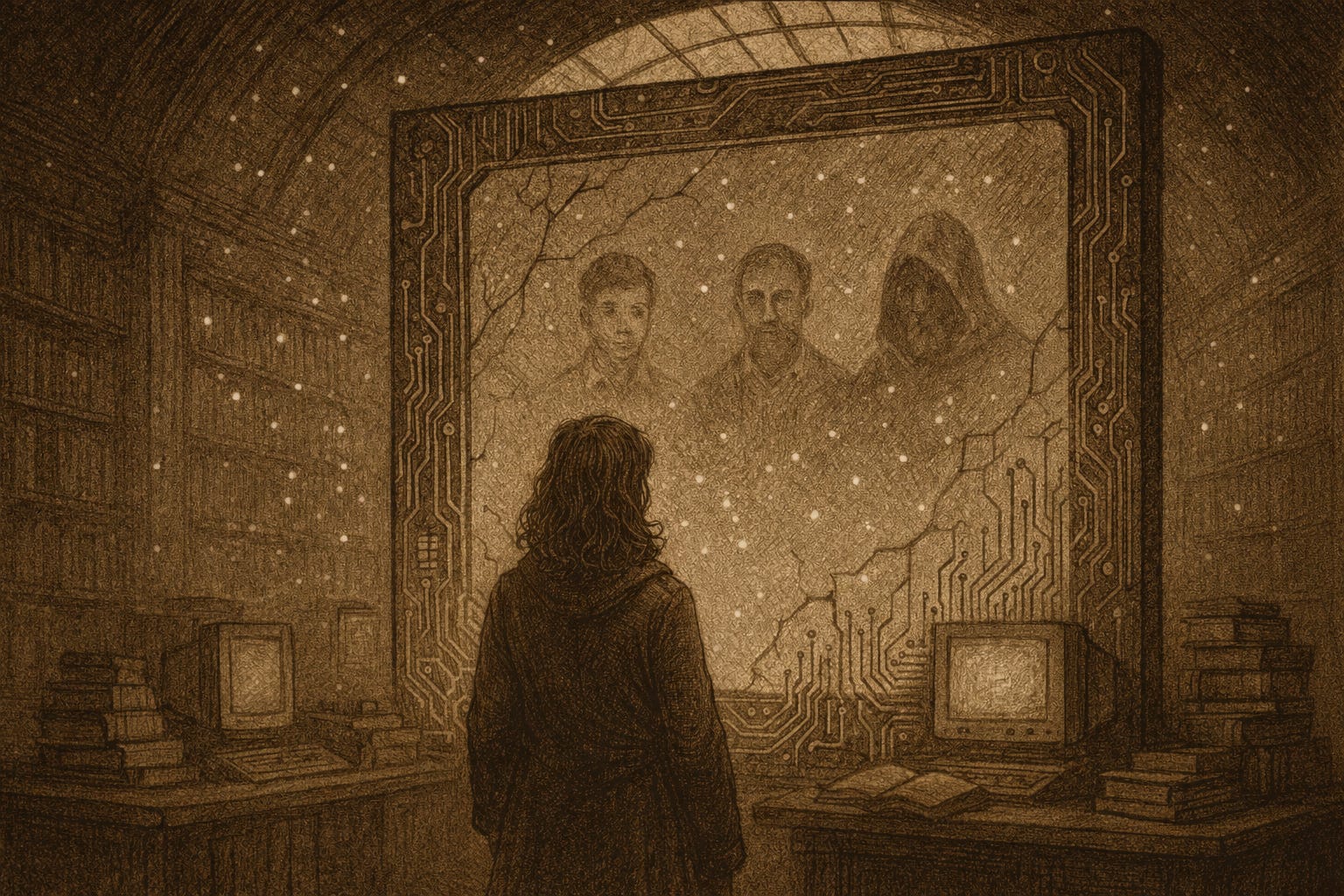 She looked up. On the central monitor, her reflection blurred into the face of a younger woman—her own, decades before. The voice softened.