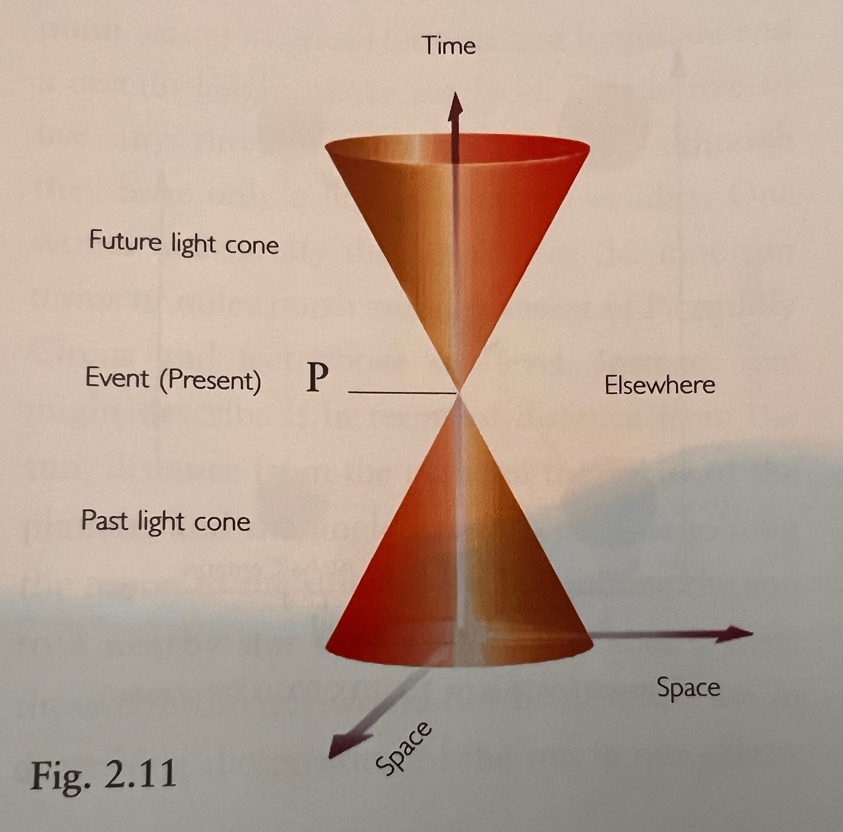 "Now, I don't want to be that guy, but I'm going to be that guy: you attributed the light cone to Stephen Hawking, but it predates Hawking by some way. It's been a standard way to talk about and teach special relativity since its early days. It comes from Hermann Minkowski's formulation of Einstein's theory. Einstein's theory was 1905 and Minkowski's work was 1907–8."