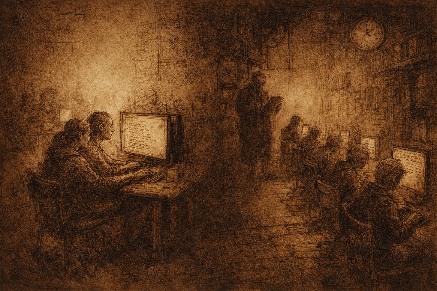 Dashboards glow like factory foremen’s clipboards. Utilisation charts twitch nervously. Tickets are assigned as though they were rivets. Someone, somewhere, is counting “productivity,” while someone else is trying desperately to look productive.