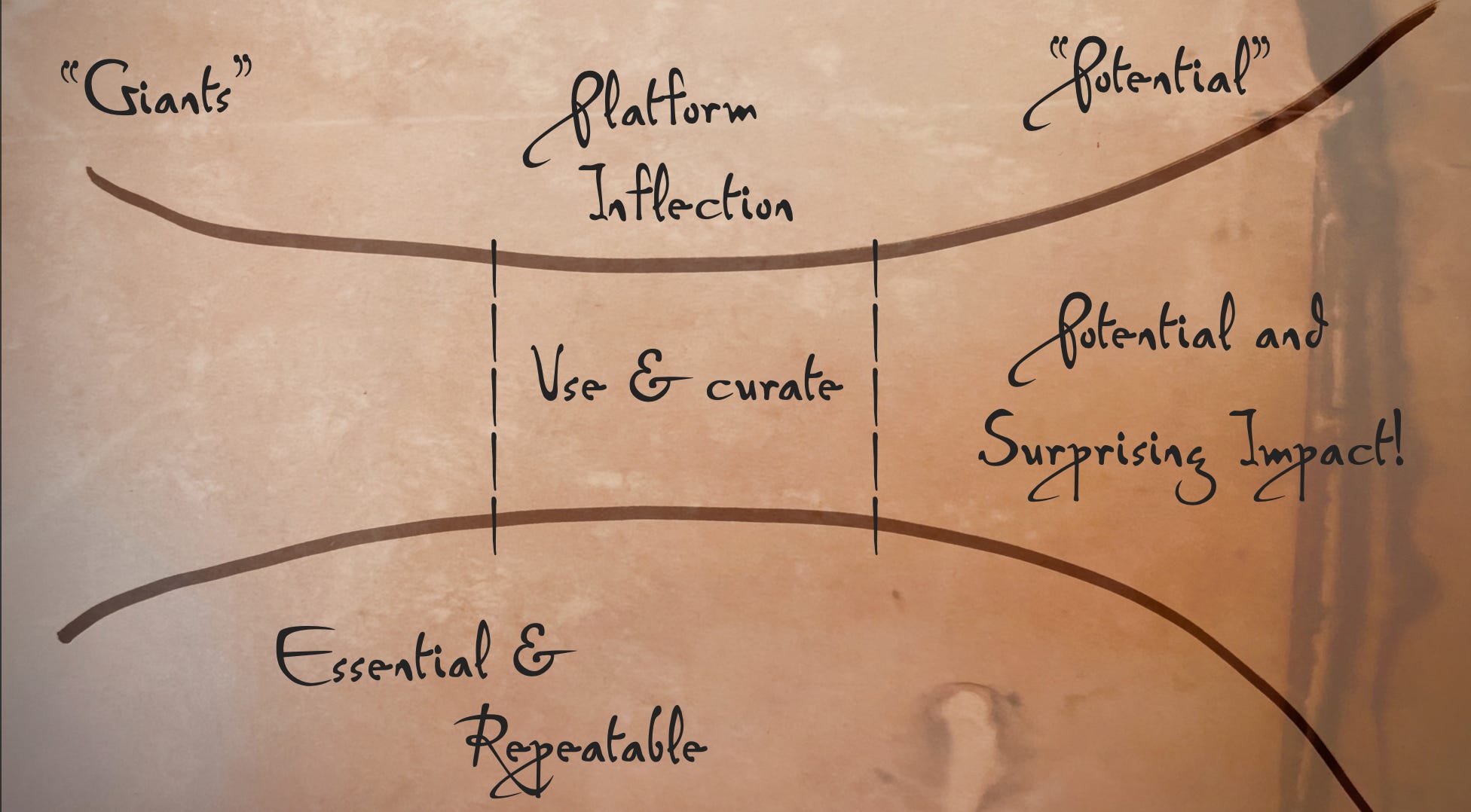 Moving on the time axis from left to right, every platform stands on the shoulders of “Giants”, curated from all the incredible technology, process and practices that have gone before. These channels of innovation are then curated, composed and provided as a platform for the future, tuned to the needs of an organisation, an industry or even the whole world.