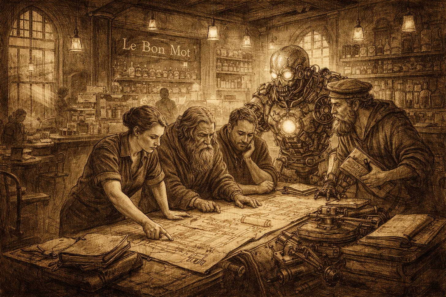 At the far table sat the usual cast. The Librarian, who catalogued ideas no one remembered writing. The Sailor, who insisted that all thinking was navigation. And Dave, who had recently taken to referring to the espresso machine as “a stochastic pressure system.”
