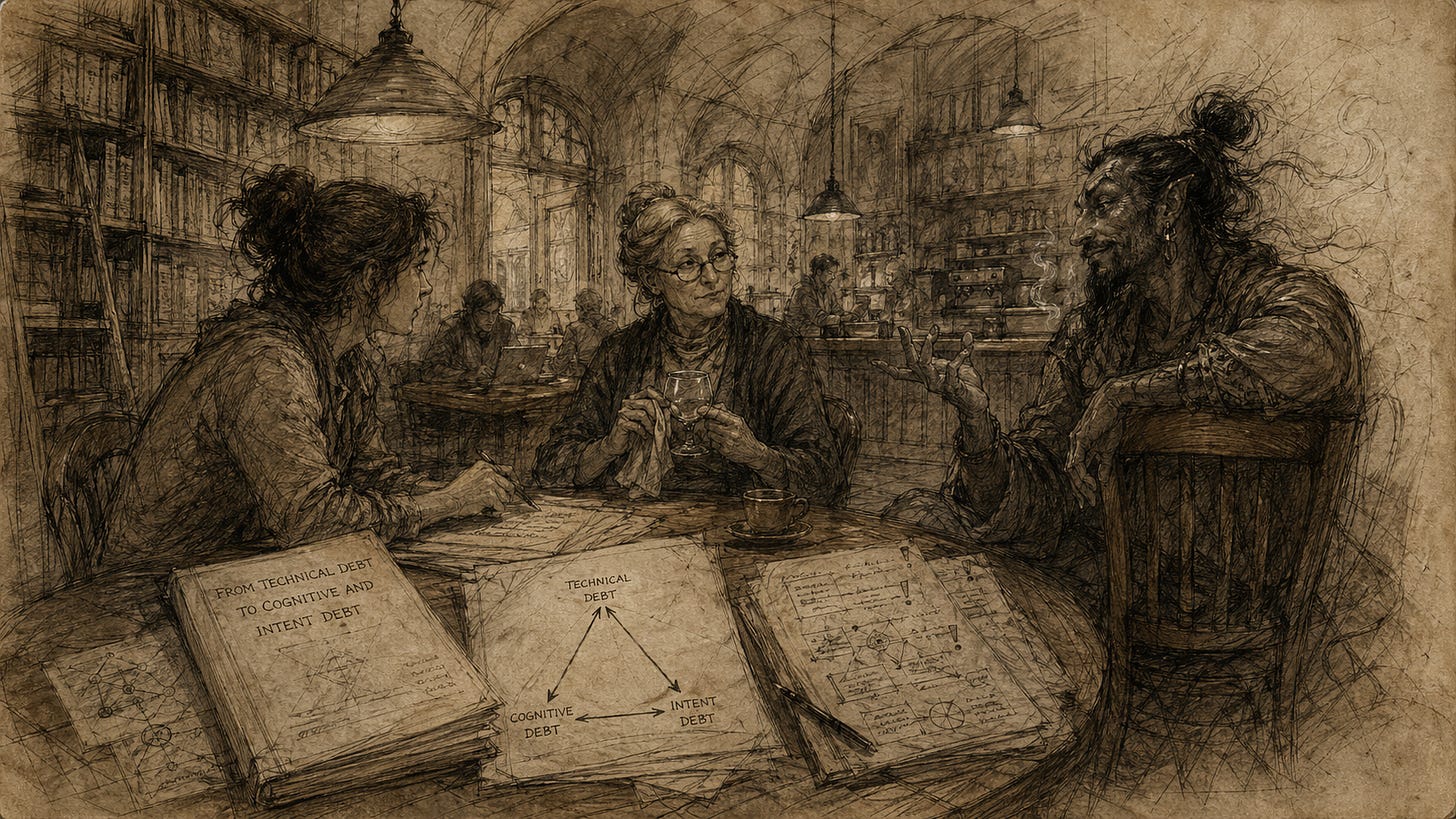 “Not because the code is broken. But because the understanding is. They cannot explain the system. They cannot predict its behaviour. They cannot trust their changes. Cognitive debt has accumulated. Intent debt has hollowed out the artefacts. Technical debt is still there but it is no longer the sole scapegoat.”