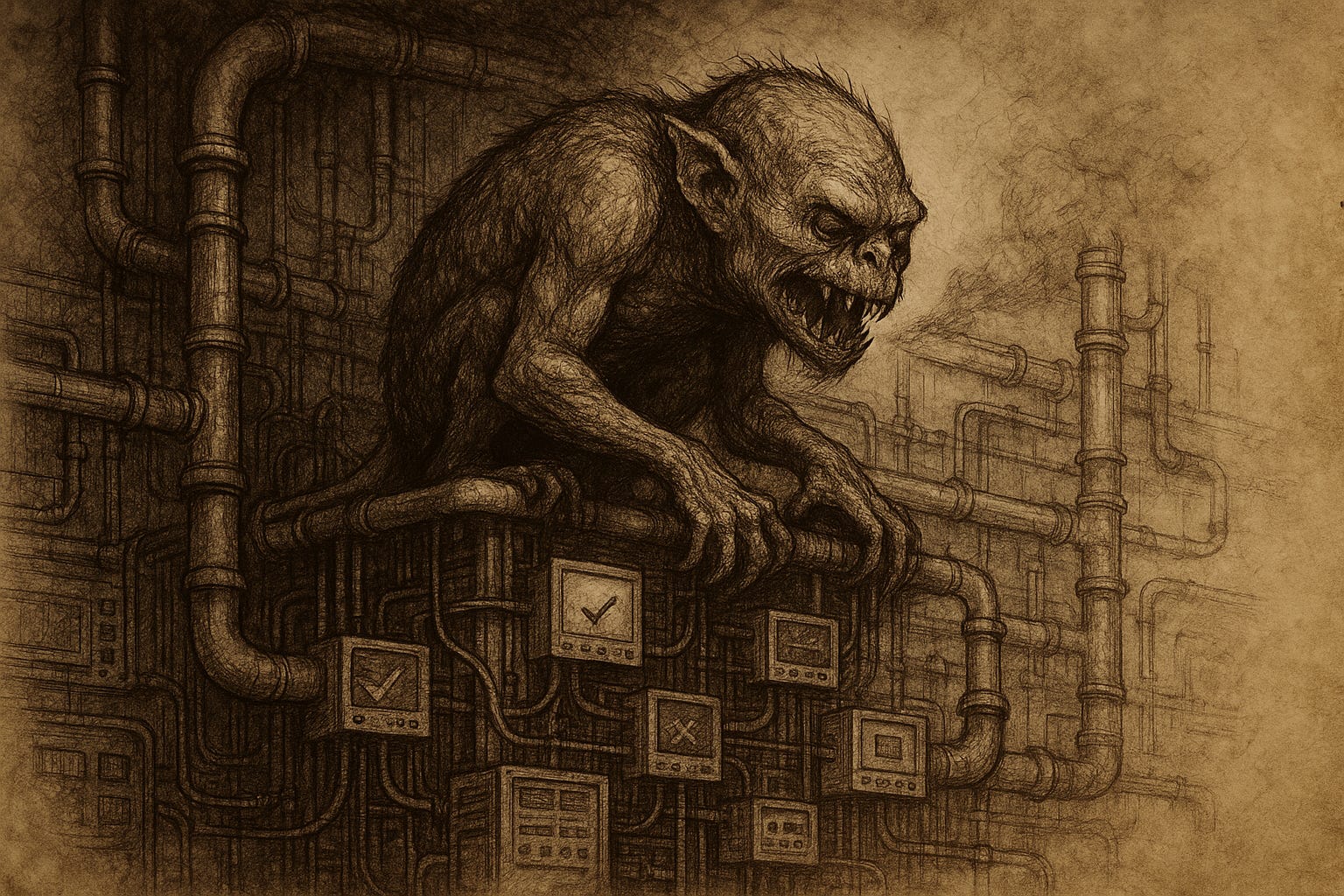 One morning a junior engineer named Sara discovered the Flake Eater sleeping inside the testing suite. It had grown large enough to block the path of value entirely. You had to step over it to ship software. It snored in retries. It exhaled uncertainty. Its skin was covered in the names of tests the team had once believed in but now merely tolerated.